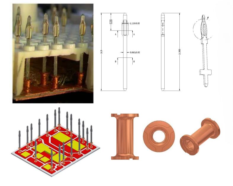 We have a wide range of press-fit pins (straight) and sleeves for IGBTs. We also handle small-scale prototyping and mass production.
